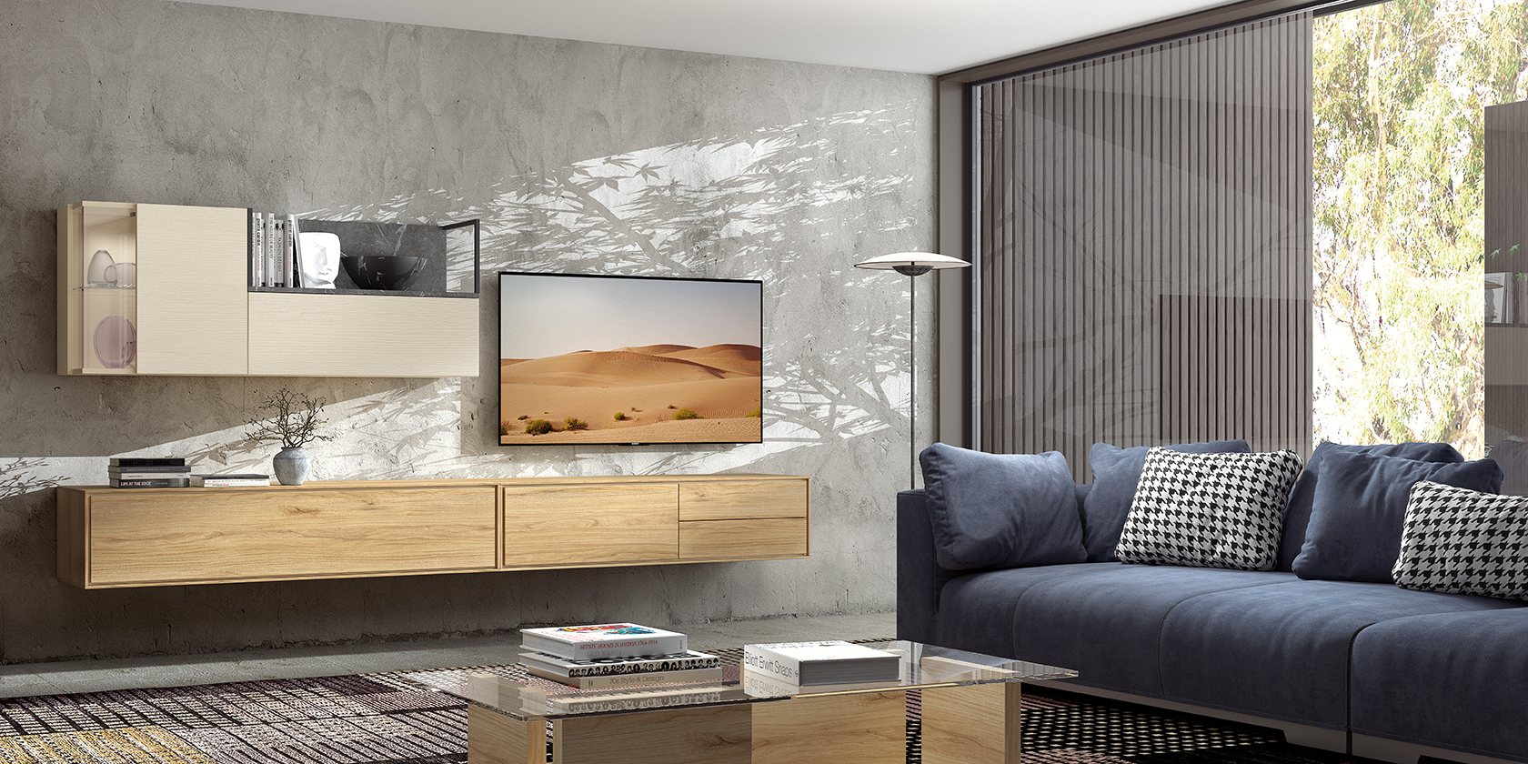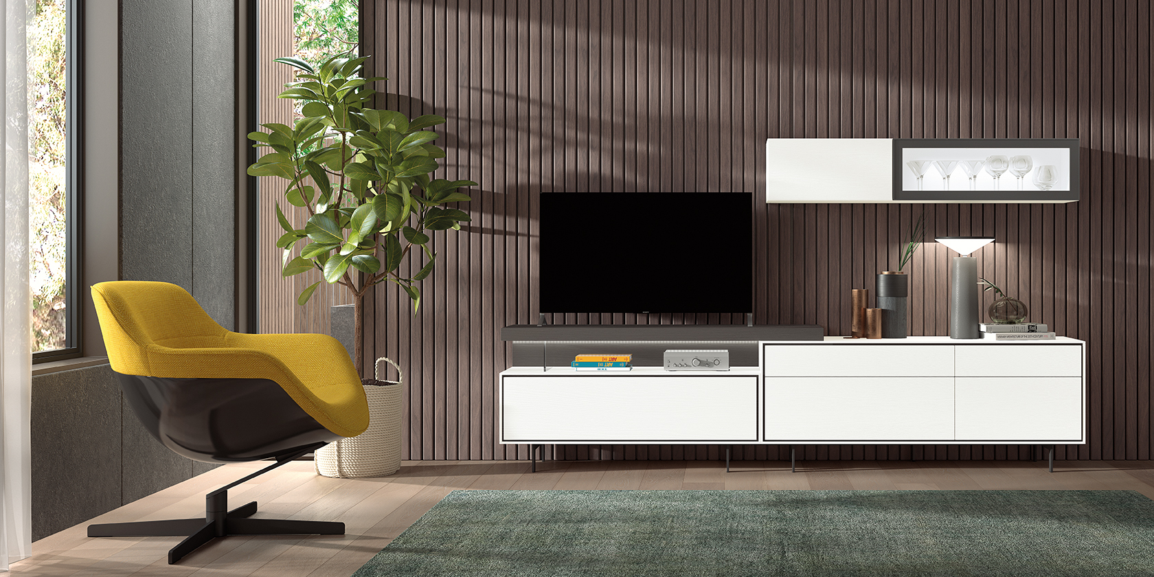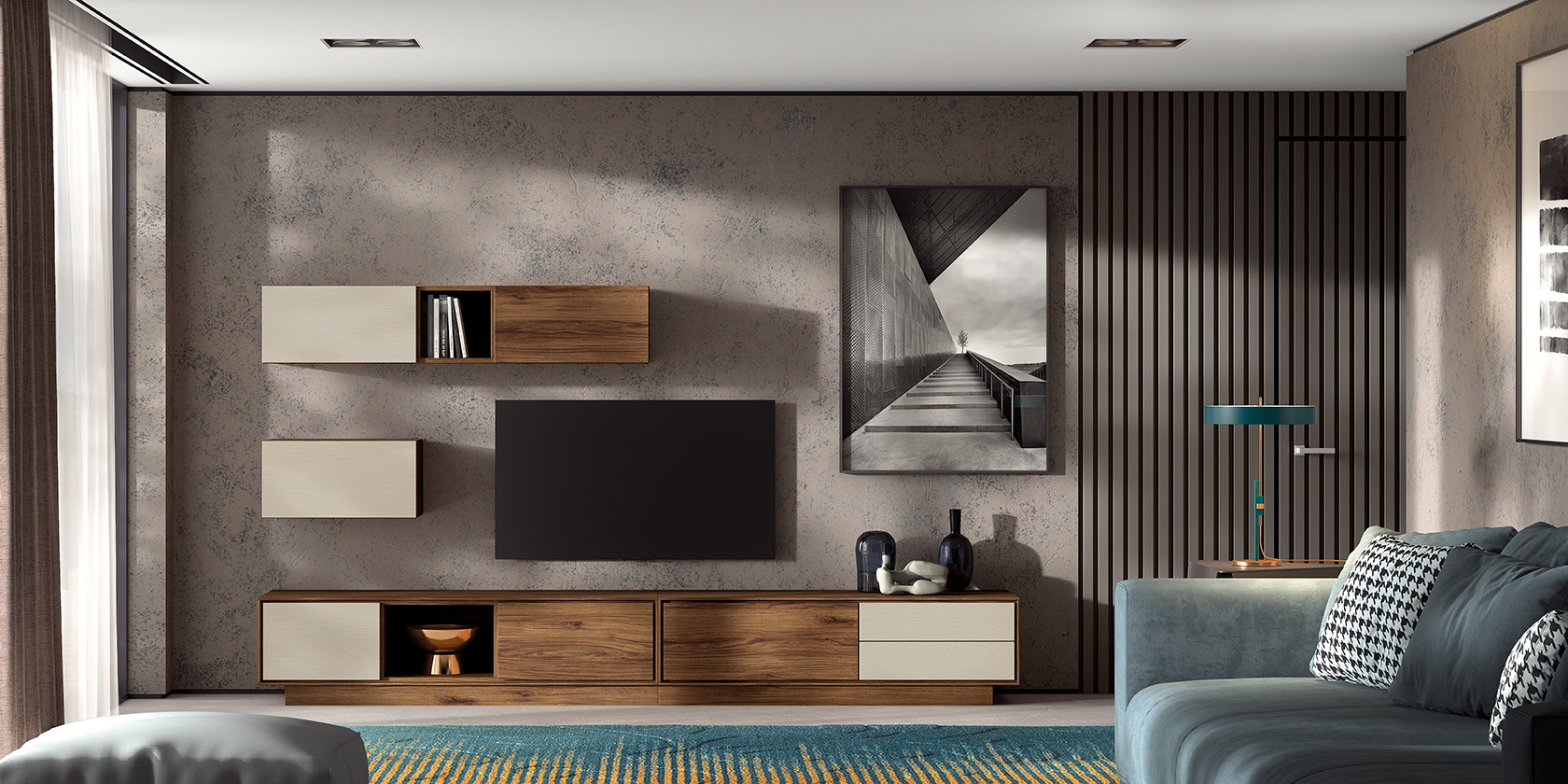 El programa de salones iris, está inspirado en el diseño de un revestimiento para nuestros módulos de televisión, aparadores y bajos verticales.
