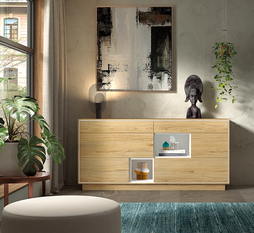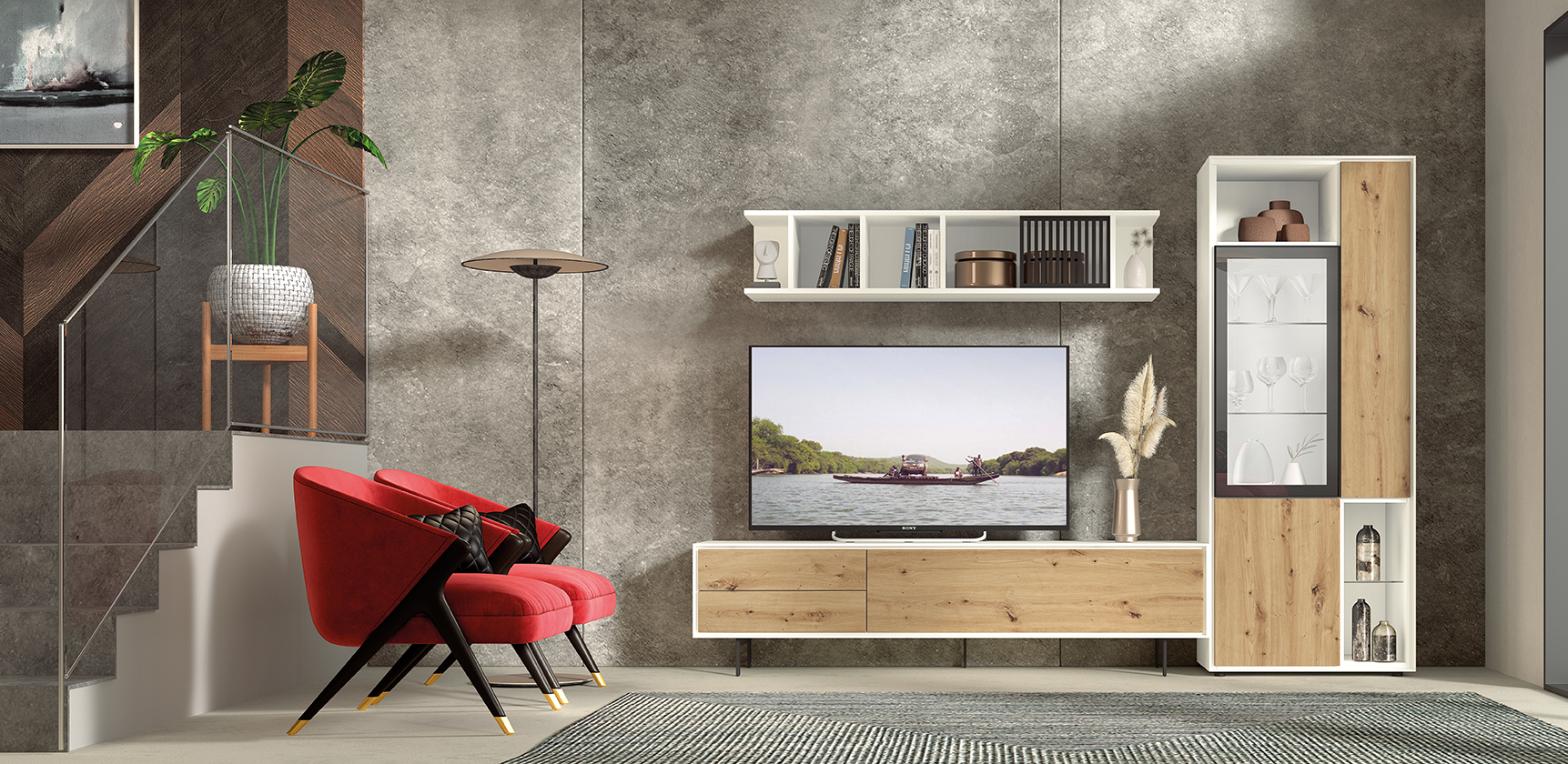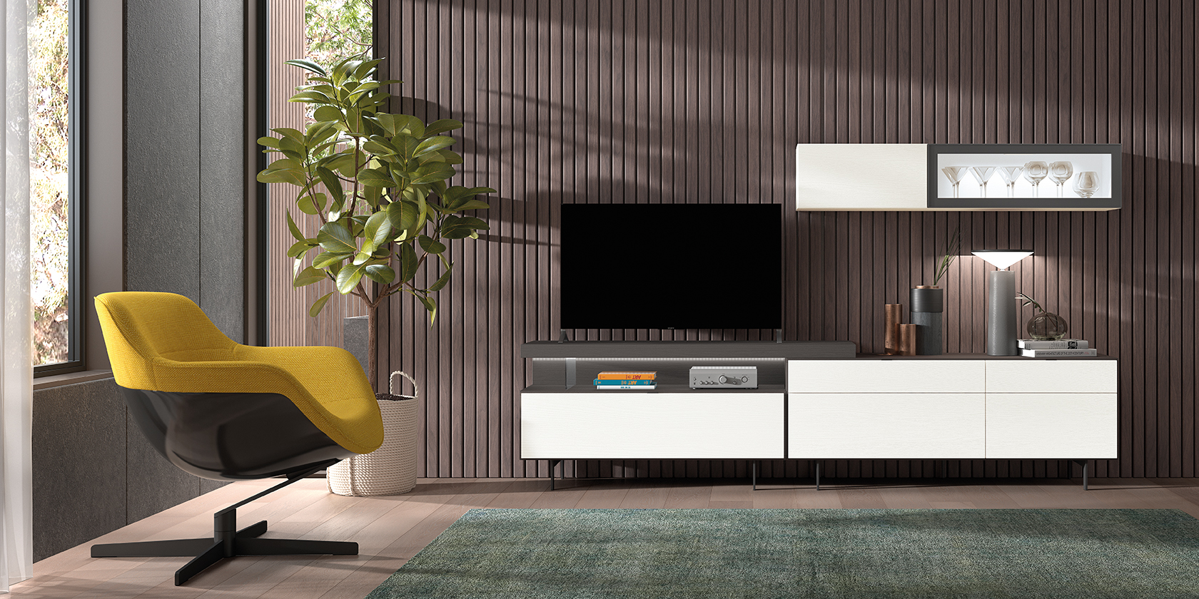 El programa de salones iris, está inspirado en el diseño de un revestimiento para nuestros módulos de televisión, aparadores y bajos verticales.