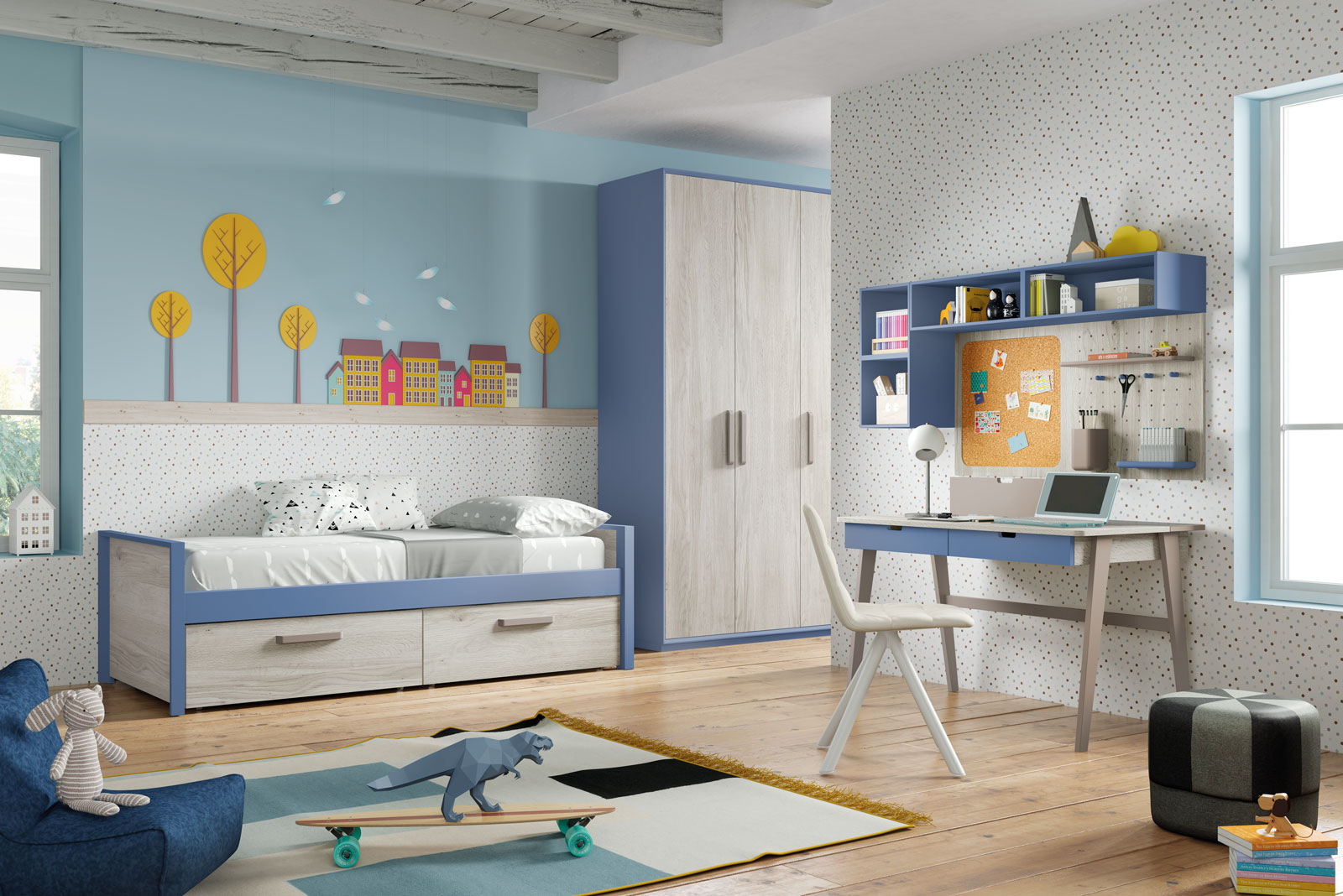 todo tipo de opciones para aprovechar siempre al máximo el espacio del dormitorio, para que se puedan llevar a cabo proyectos personalizados según las necesidades de cada cliente. La fabricación, siempre cuidada al detalle, tanto en materia prima como en herrajes adecuados para el uso de los más pequeños, viene dada de manos de profesionales, avalados muchos de ellos por más de 30 años de experiencia en el sector