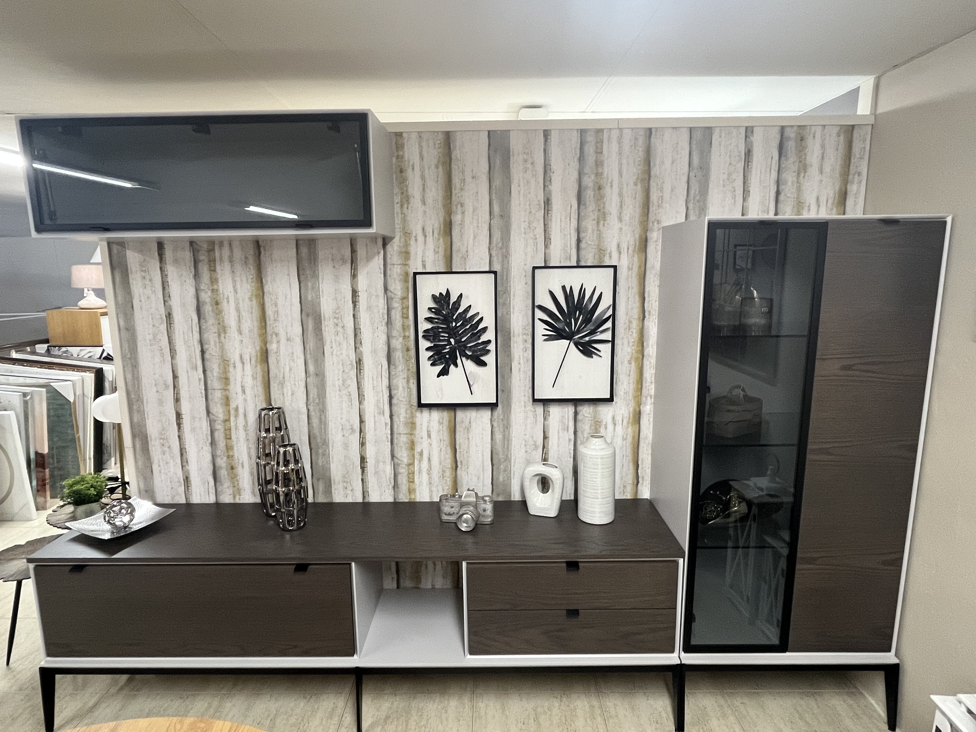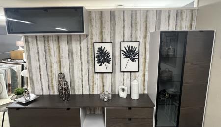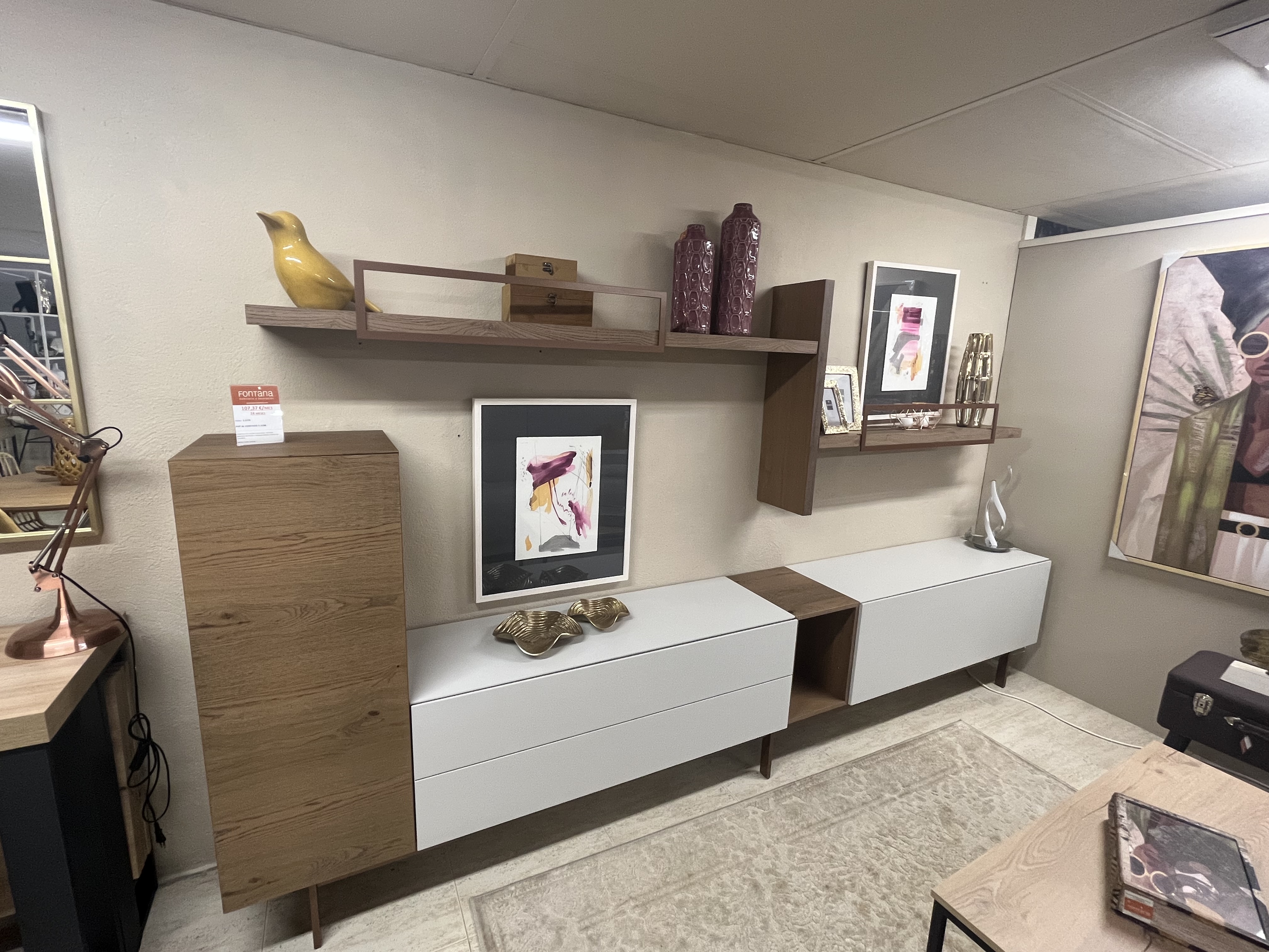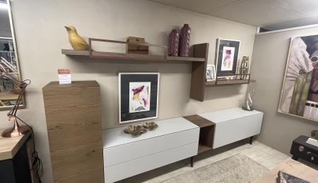 Composición Mueble Salón. Med. 280cm. Acabado estructura madera lacada-frente madera.