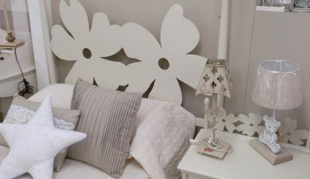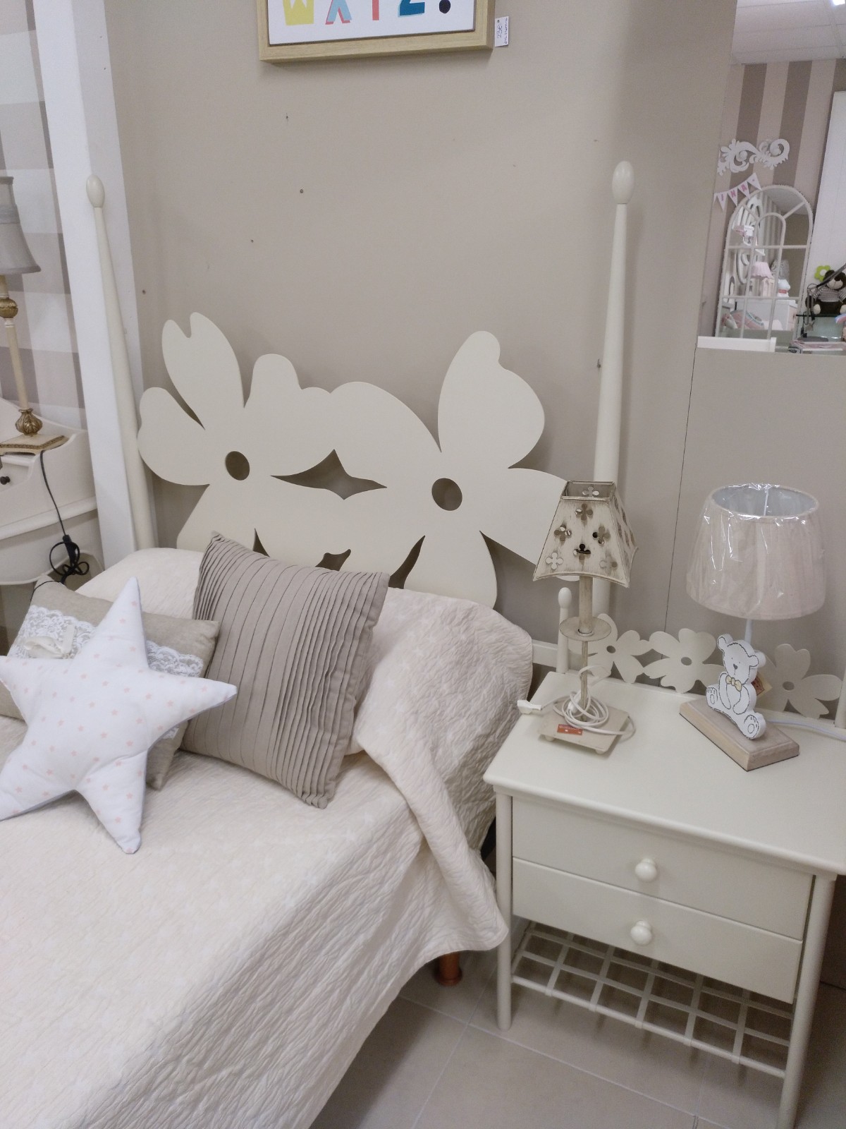 Conjunto de cabecero de forja lacado beige para cama de 105 cm y mesilla de noche en forja y madera